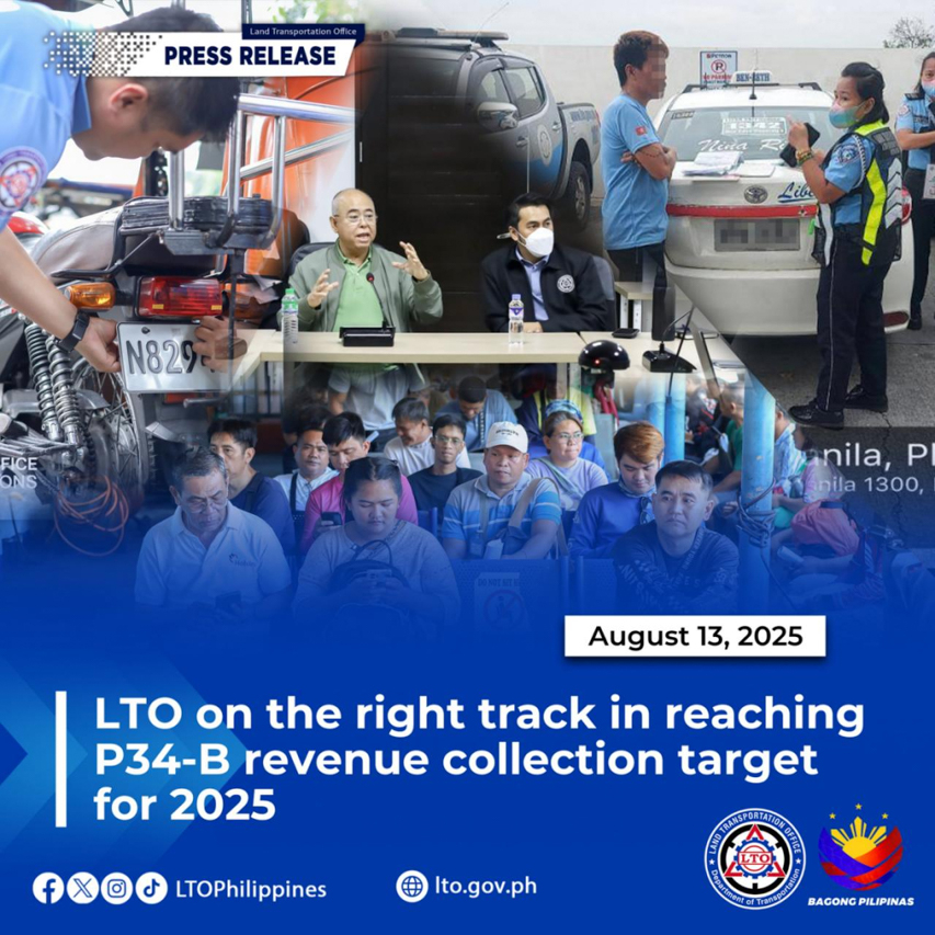 The Land Transportation Office (LTO) is pleased to report to the public that it is already at 68% of its 2025 collection target of PHP 34 billion. According to LTO, it has already collected over PHP 19.7 billion in revenue as of July 31.