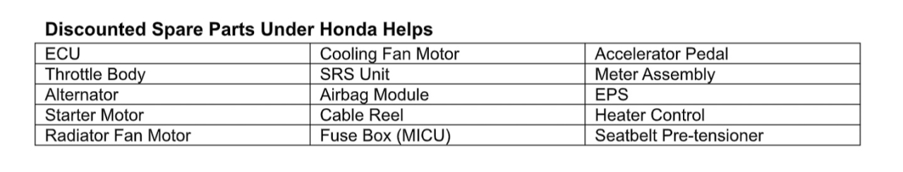 Recognizing the financial strain that comes with vehicle repairs after such events, HCPI is offering a 30% discount on select spare parts through its Honda Helps Program.