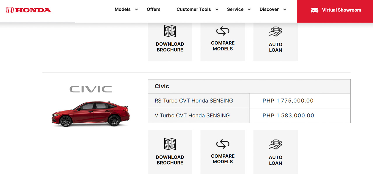 If you're looking to get yourself a Honda Civic soon, the range will now start with the Civic V which is currently selling for over PHP 1.58 million.