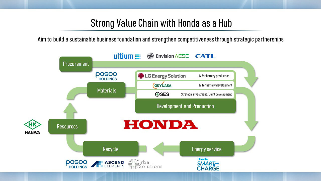 In order to ensure Honda's plan for electrification has steady progress, the automaker entered into various strategic partnerships in areas ranging from procurement to resource circulation of batteries and battery resources. They're also building a strong value with Honda as a hub to establish a sustainable business foundation.