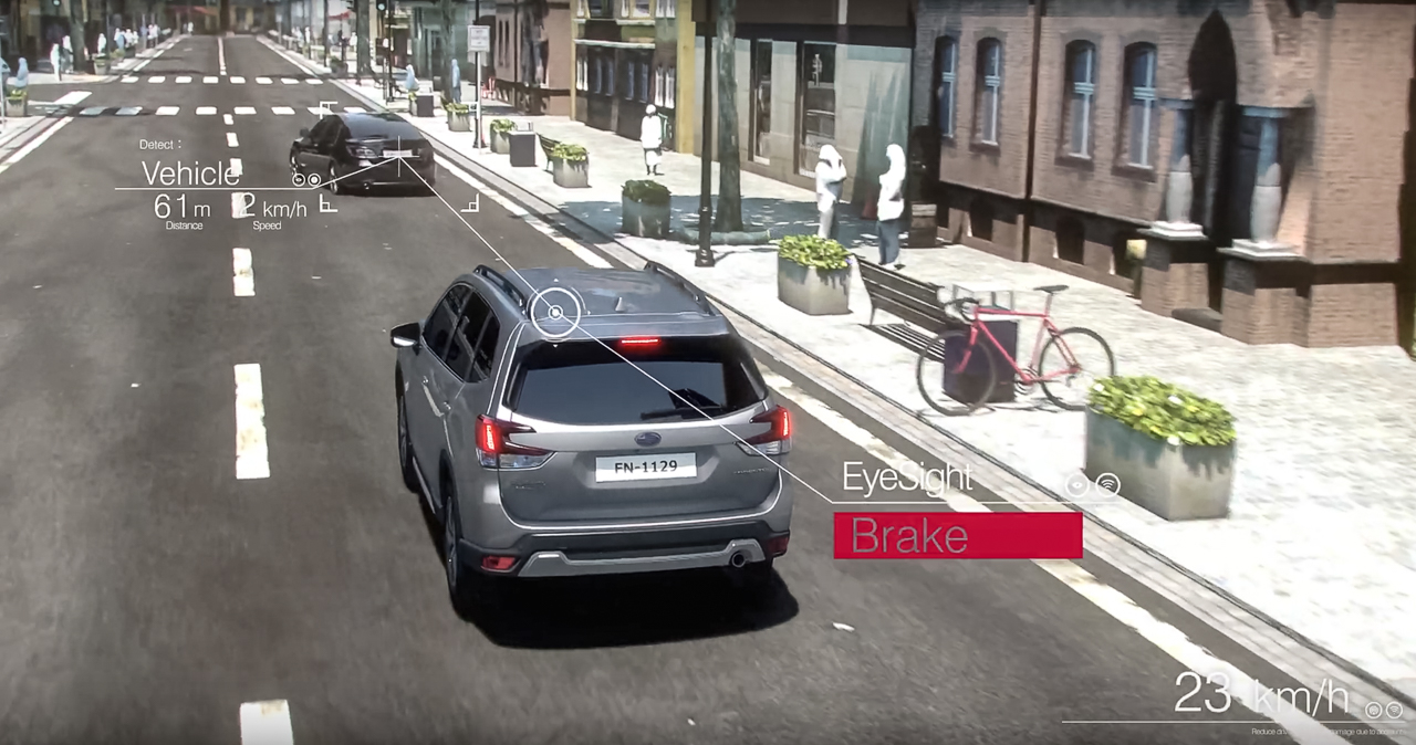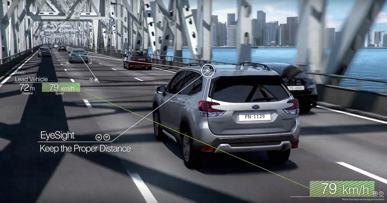 EyeSight uses that information to alert the driver if he or she hasn't reacted so an obstacle in the way, like if the vehicle ahead suddenly slows down or comes to a stop. In traffic, EyeSight will even alert you if the vehicle in front of you already started moving... hopefully before the driver behind you starts honking the horn.
