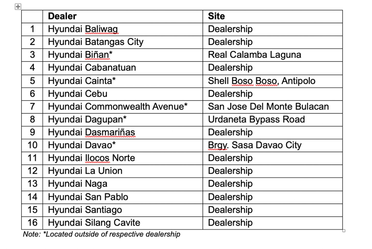 During these dates, all Hyundai owners are entitled to Roadside Assistance with a free 23-Point Car Check-Up and free Global Diagnostic System (GDS) Scan. Operating hours are from 8:00 AM to 5:00 PM at the following Hyundai dealerships: