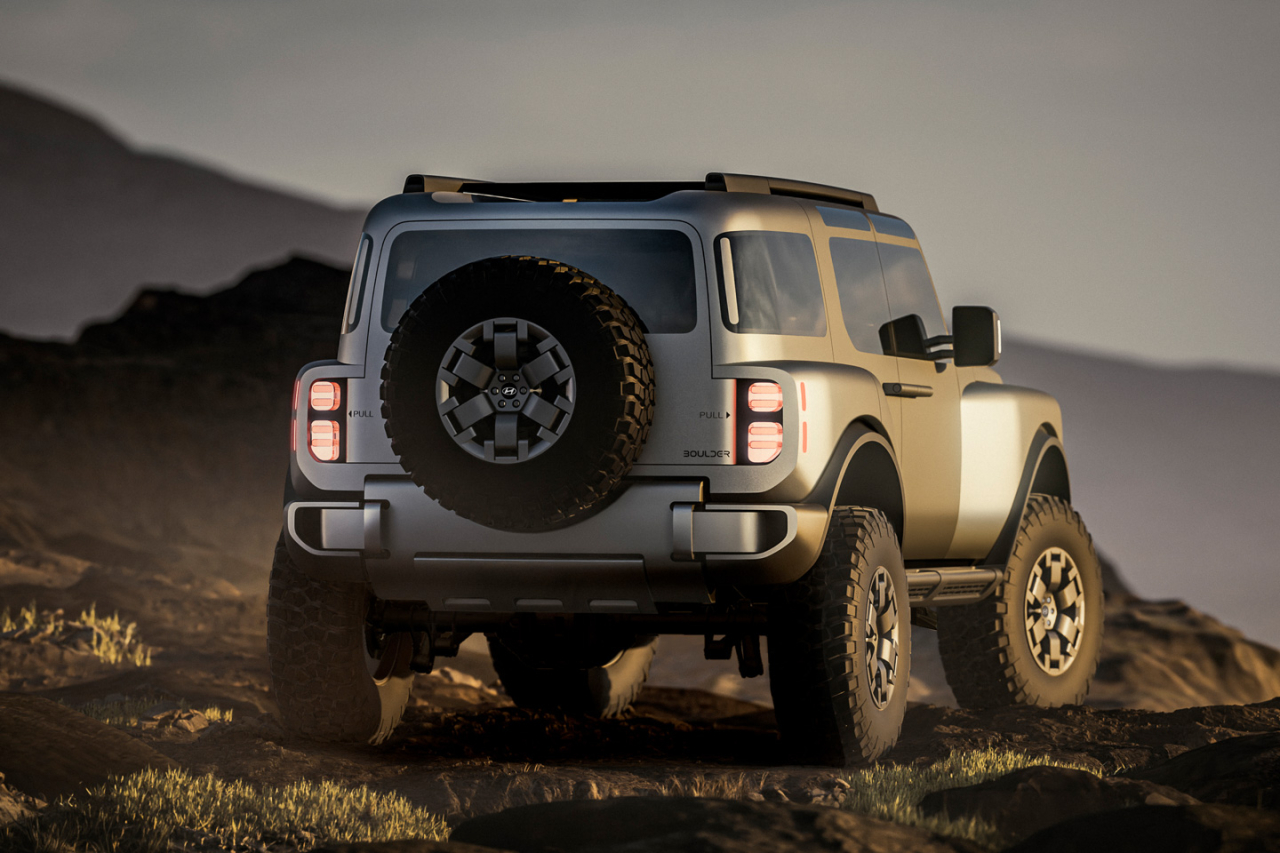 Think of it as the Korean version of the FJ, or the Bronco with the Sasquatch package – that’s what the Boulder Concept is all about. It has 37-inch mud terrain tires on 18-inch wheels, a boxy design, and wide fenders that make up its muscular and rugged appearance.