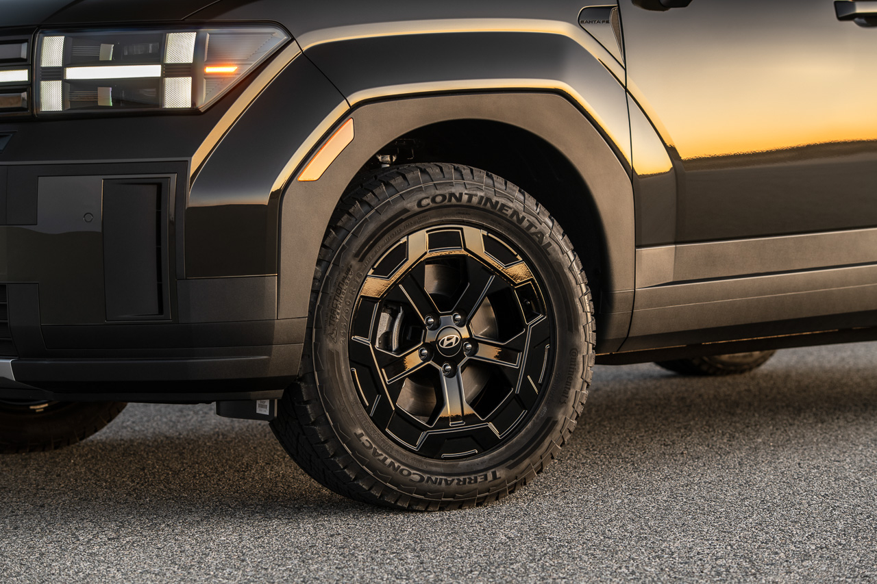 While it may not look like it, the XRT version gets nearly 1.5 inches of additional ground clearance along with Continental TerrainContact 245/60/R18 all-terrain tires that ensure the Santa Fe XRT can go anywhere it pleases. It’s also complemented by a wide array of dark chrome and black trim accents throughout its exterior, black roof rails, and body cladding to protect its body from the elements while going off-road.