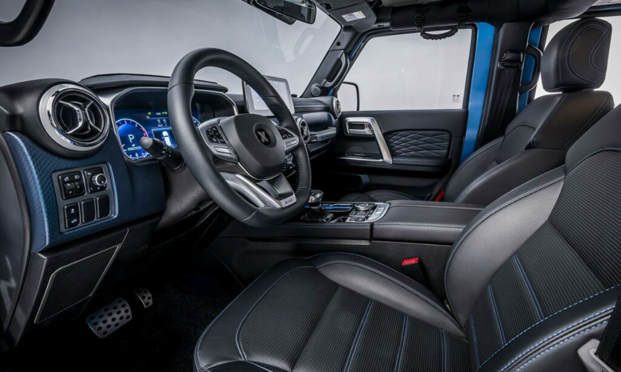 Inside, the Ickx K2 has a well-appointed interior. It has a 12.3-inch infotainment screen that (surprisingly) has Apple CarPlay and Android Auto, dual-zone climate control, and leather upholstery. Now going back to the Wrangler inspiration, the K2 also has removable doors, as well as a three-piece roof.