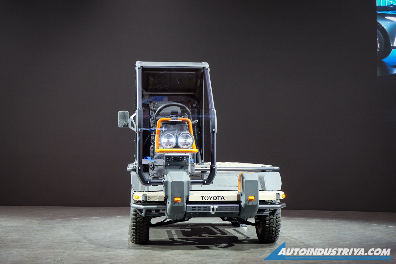 The end-user (you) will be tasked to configure it how you like based on your purposes. You can do that by utilizing many threaded holes on the flat deck that bolt directly to the frame of the vehicle. That means you can use whatever pre-fabricated body structure Toyota may have that could transform the flat platform into something like a pick-up truck. An end-user could conceivable even have some custom panels made, like maybe even a closed box or other kind of specialized body; all they would need to do is to make sure the bolt holes line up with the threaded points on the deck.