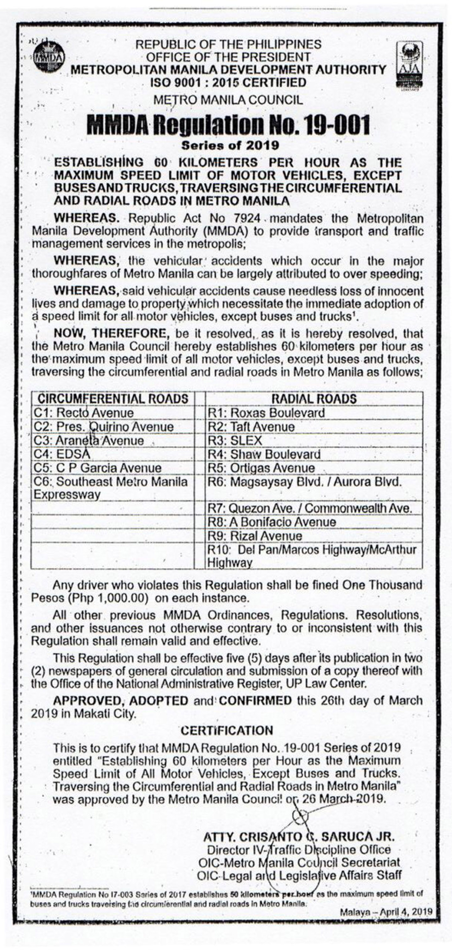 Is MMDA trying to supersede R.A. 4136 with 60 km/h speed limit?