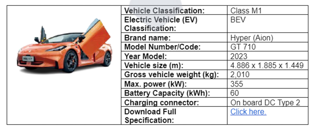 We were able to get a hold of the Department of Energy's list of recognized Battery Electric Vehicles (BEV), and surprise, surprise, we found GAC's halo model, the Aion Hyper GT, was there.