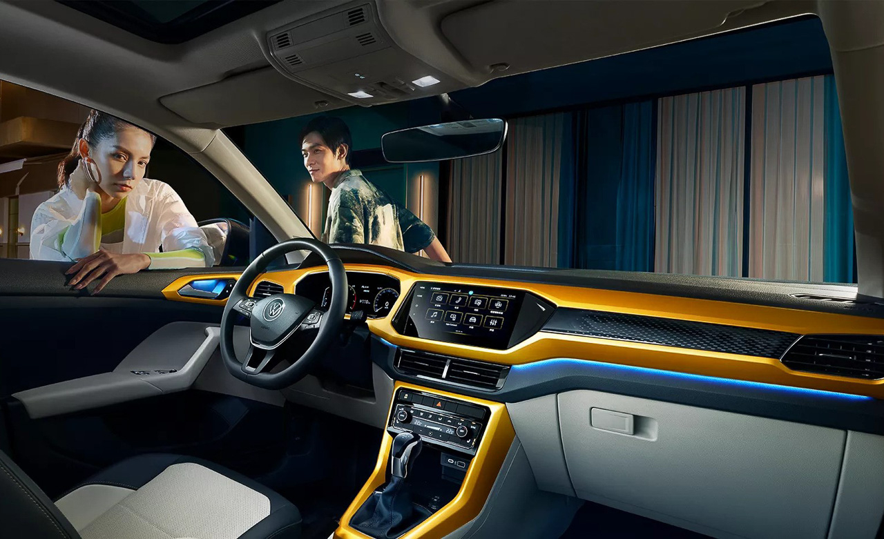 Taking a quick look at what Volkswagen China currently gets, the T-Cross has indeed been updated for the 2023 model year. While it still looks relatively the same, it now gets blacked-out alloy wheels, black side mirror caps (we get body-colored side mirrors), and a new checkered flag-style decal on the D-pillars. The interior, meanwhile, now features LED ambient lighting for a cozier look and feel.