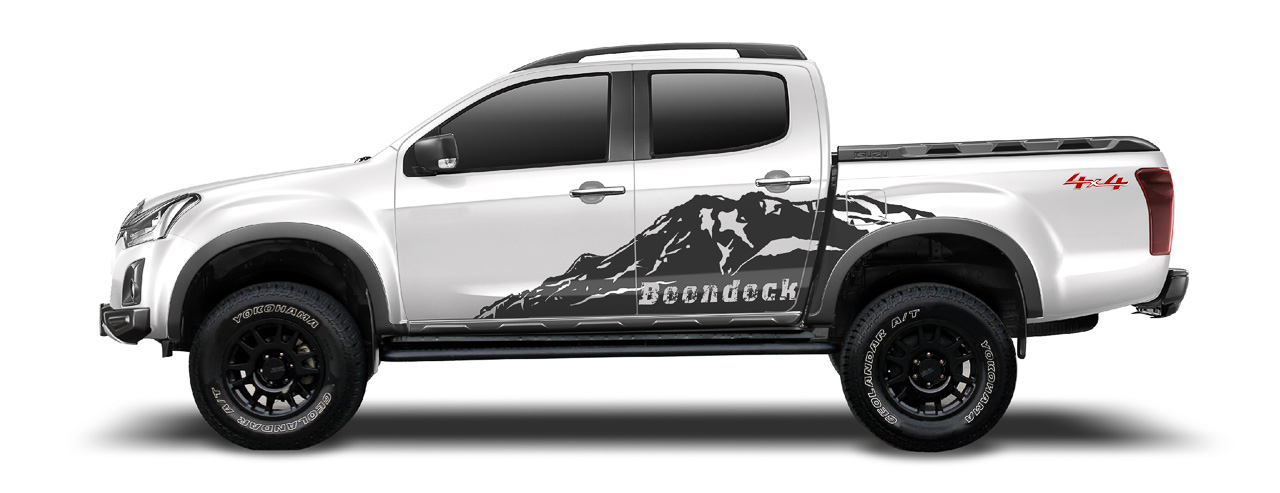 New honeycomb-style side steps with unique 'Boondock' lettering not only provides easier egress/ingress for passengers, but it also allows users to easily clean it. Other exterior upgrades Isuzu introduced on the new Boondock 4x4 are a new front grille/front bumper design finished in gray, distinct body graphics on the hood and doors, Boondock decal on the tailgate, cargo bed extender, roof rails, rocker panels, over-fenders, bed liner, and a front skid plate.