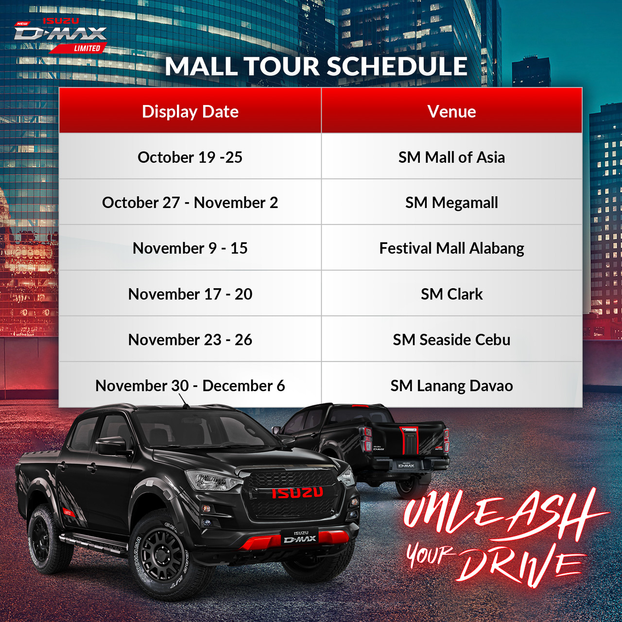 From October to December, get to see the Isuzu D-Max Limited at your nearest mall