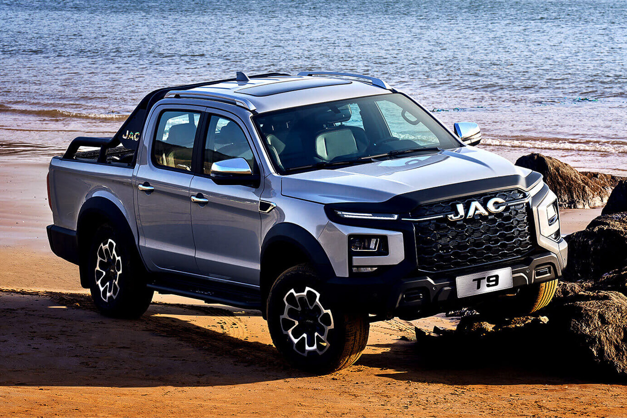 Based on the global specs, the JAC Motors T9 pickup truck gets a 2.0-liter turbo-diesel inline-four that puts out 170 PS at 3600 rpm and 410 Nm of torque between 1500 - 2500 rpm. Power is then sent to an 8-speed automatic gearbox which is available with 4WD along with a rear differential lock for extra grip. Size-wise, the pickup truck measures 5330mm long, 1965mm wide, 1920mm tall, and has a 3110mm wheelbase.