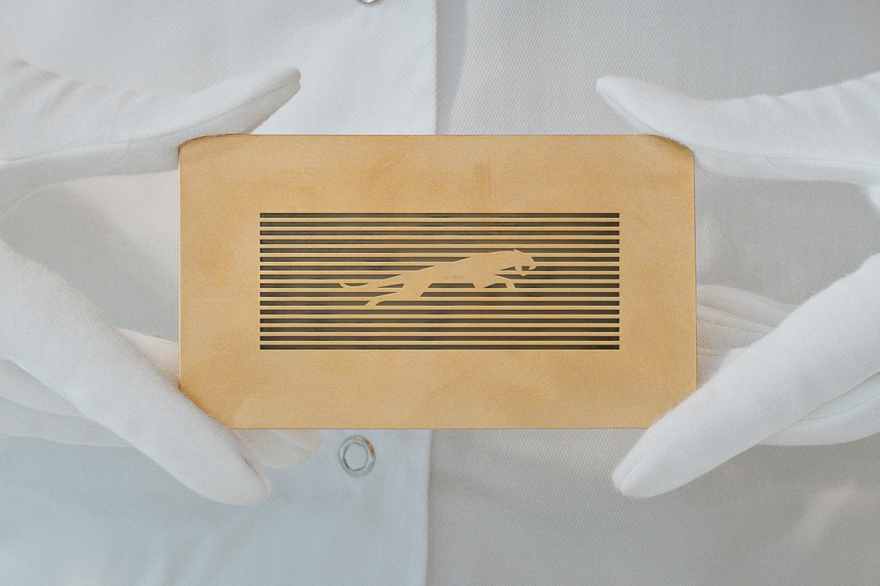 Next is the new strikethrough which has a bold linear graphic that showcases Jaguar's presence and recognizable visual for the Jaguar brand. This is then complemented by the new Maker's Mark which shows a reimagined Jaguar “leaper” - representing the brand always “leaping forward”.