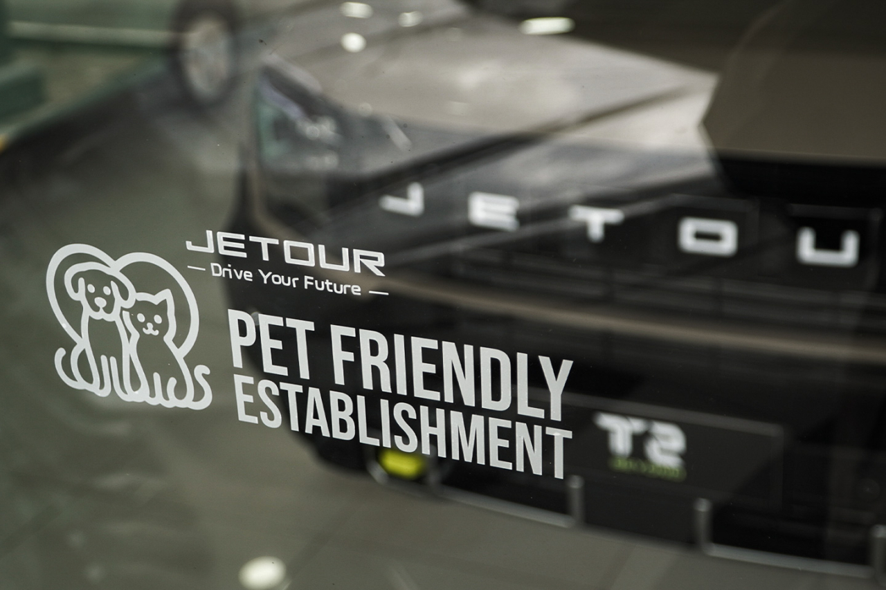 Pet-friendly stickers will be displayed prominently on the entrance doors of Jetour dealer sales showrooms. These stickers, featuring a simple dog and cat paw print design along with the text “Pet Friendly Establishment,” signify that all pets are welcome in the showrooms.