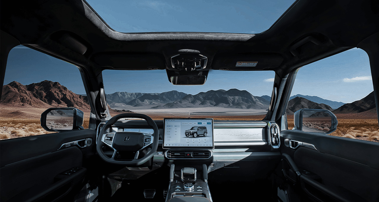 Style-wise, the Jetour T-2 appears to have taken inspiration from the Bronco and Defender thanks to its boxy exterior, rugged design, and tall ride height. It also has a luxurious cabin that's filled to the brim with features like a 10.25-inch digital instrument panel, a wide 15.6-inch touchscreen infotainment system powered by a built-in Qualcomm Snapdragon 8155 chipset, full leather seats with contrast stitching, a 64-inch panoramic sunroof, and power-adjustable seats with memory function.