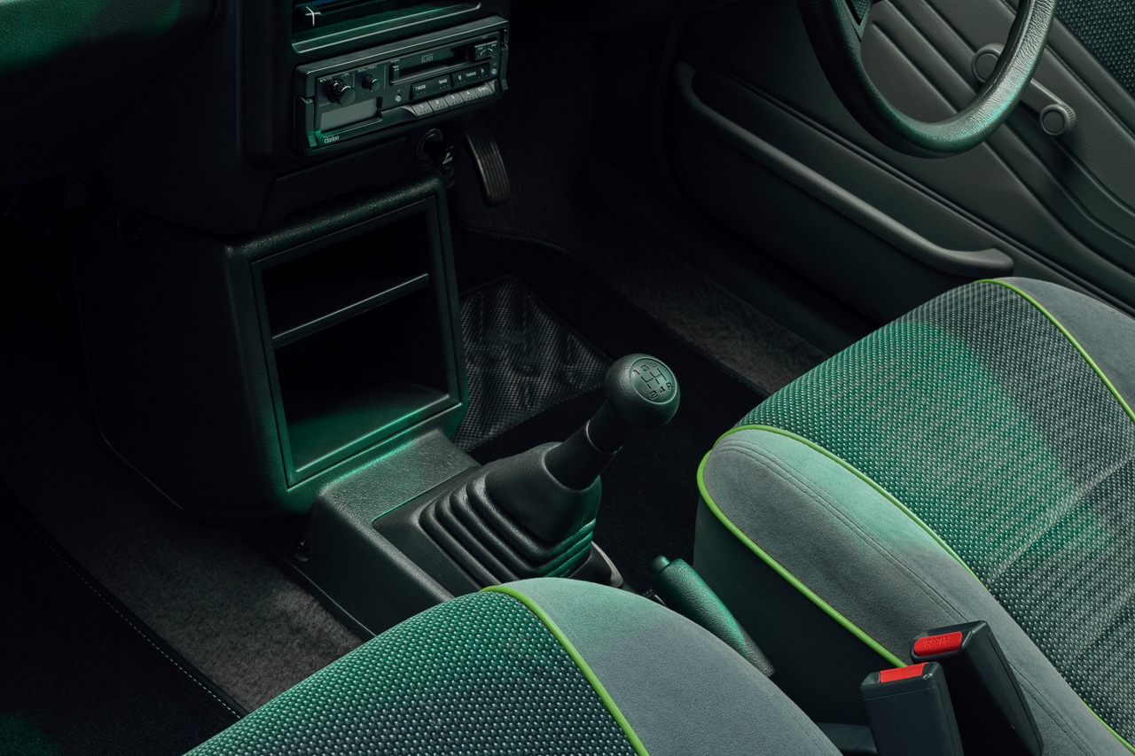 Hop inside and the Kia Pride EV takes you back to the 1990s with its simple yet charming cabin. From the original tape cassette player, factory stock air-conditioner, and window winders, the Pride EV's cabin is a reminder of Kia's origins. New, however, are the lime green accents on the seats which give it a more youthful vibe.