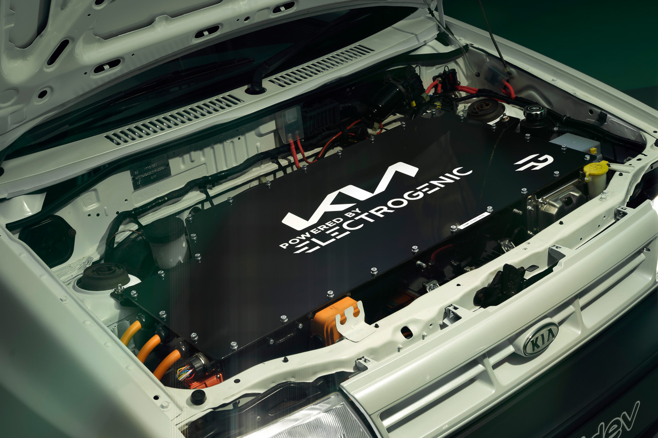 Using a 1996 Kia Pride as a base, the EV restomod sees the humble hatchback's 1.3L naturally-aspirated engine replaced with an electric motor that's rated to produce 109 PS and 235 Nm of torque. Interestingly, Kia and Electrogenic kept the 5-speed manual gearbox (albeit modified) of the Pride EV and paired it with a high-performance clutch to accommodate the extra torque of the motor.