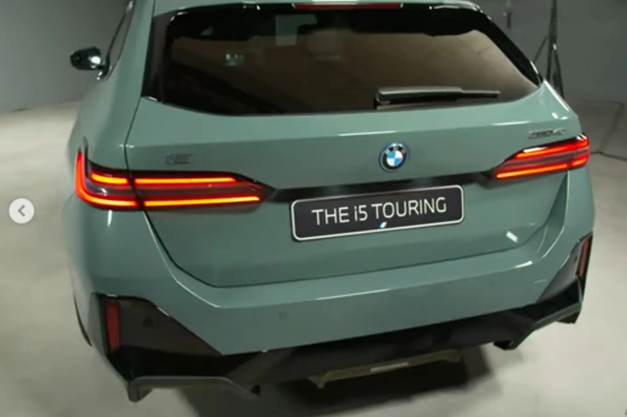That's right, this is the all-new BMW i5 Touring before you're supposed to see it. Posted by Instagram user wilocoblok, we get an early look at the curvaceous rear of the electric 5 Series wagon. It's painted in a unique shade of green and appears to have been snapped in a photoshoot.