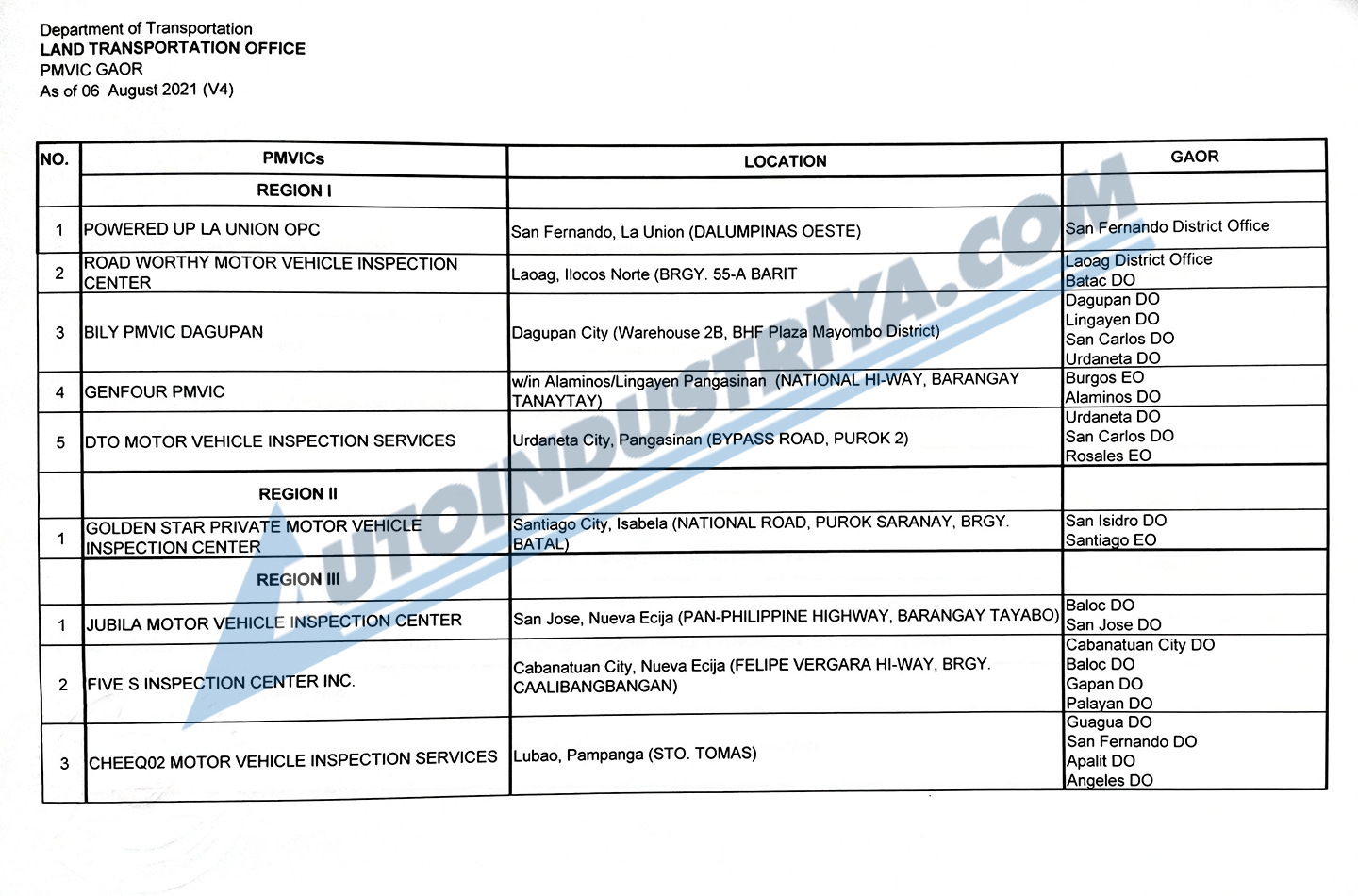 If your local LTO DO or EO is not listed above, that would likely mean that there is no PMVIC that is operating in the area. There are a few notable absences that we can spot like the province of Palawan and even Davao City.