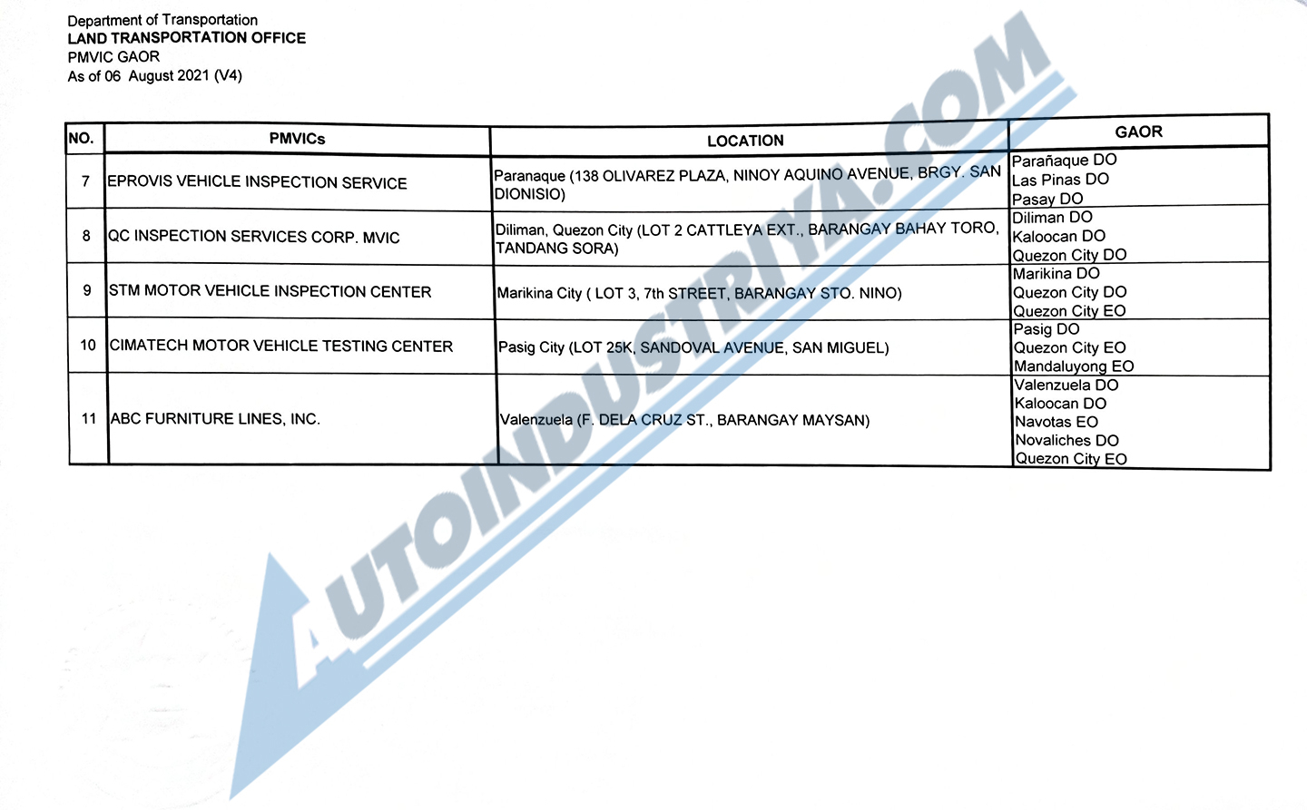 In that situation, LTO branches will be accepting inspection reports by a PMVIC or have a test done by a PETC. There are also instances where an LTO branch can accept an inspection report from multiple PMVICs if the LTO designates that there is more than one in the GAOR based on the list.