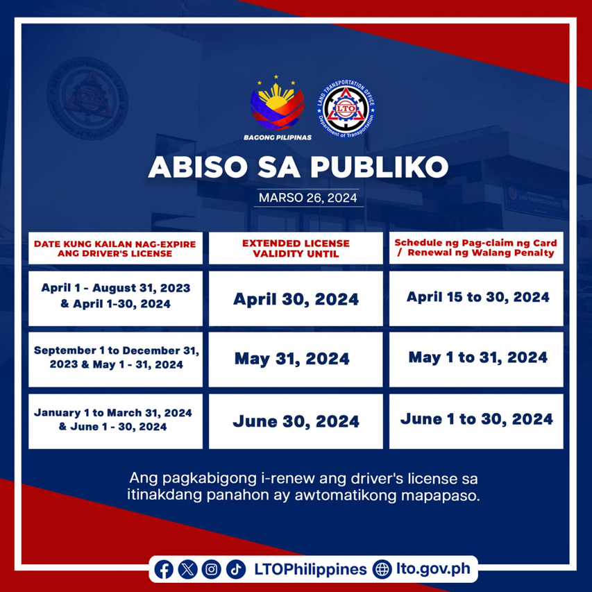 Back in March, the LTO issued the schedule of renewal and claiming of physical driver’s licenses following the Court of Appeals lifting of an injunction order by a Quezon City Regional Trial Court.