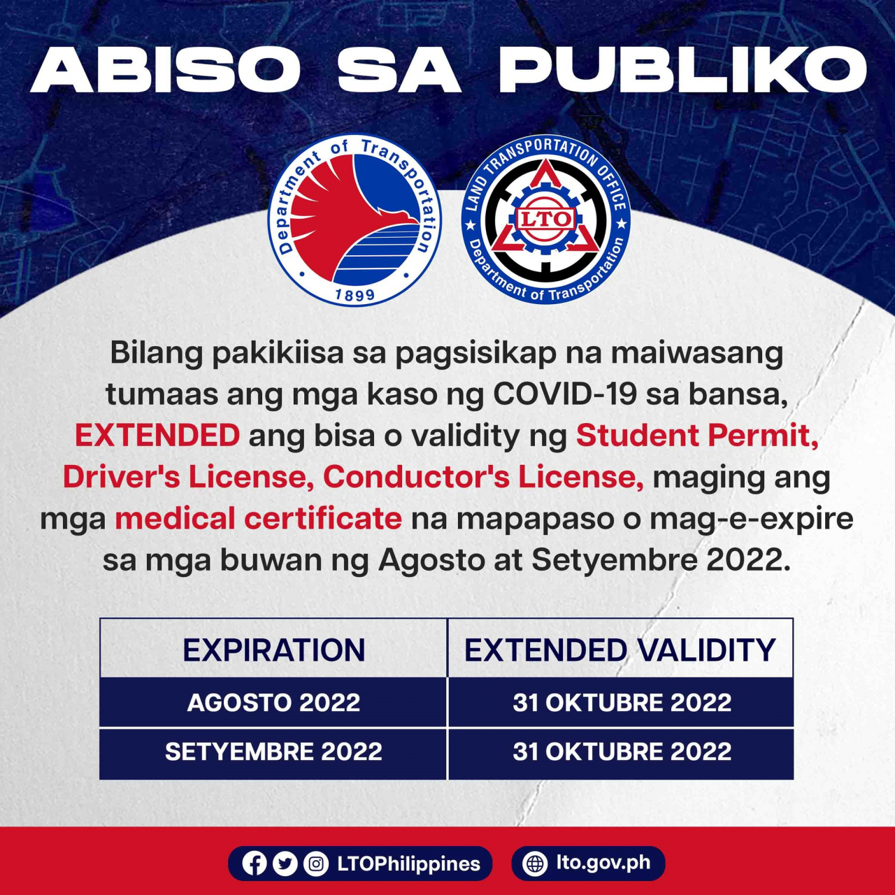 Based on the agency's post, this is to give those who may have been affected by the recent typhoon Karding enough time to prioritize their recovery. In addition, it's also a way of LTO to keep their offices from being crowded and prevent the rise of active cases in the country.