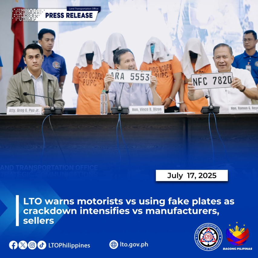 Acting LTO Chief Atty. Greg Pua, Jr., said that there is no longer any justification for motorists to acquire fake plates, given that the national backlog in legitimate motor vehicle plates has been fully addressed.