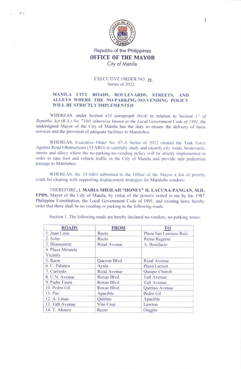 Motorists who usually park their cars on the road in Manila, here is important information you need to remember. The City of Manila recently released Executive Order No. 15 of 2022 which dictates roads, boulevards, streets, and alleys where parking will not be allowed.