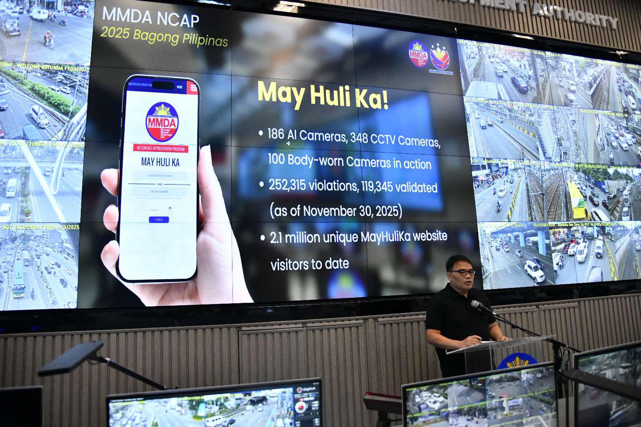As of November 30, the MMDA has recorded 252,315 violations, with 119,345 validated. The agency currently deploys 186 AI cameras, 348 CCTV cameras, and 100 body-worn cameras.