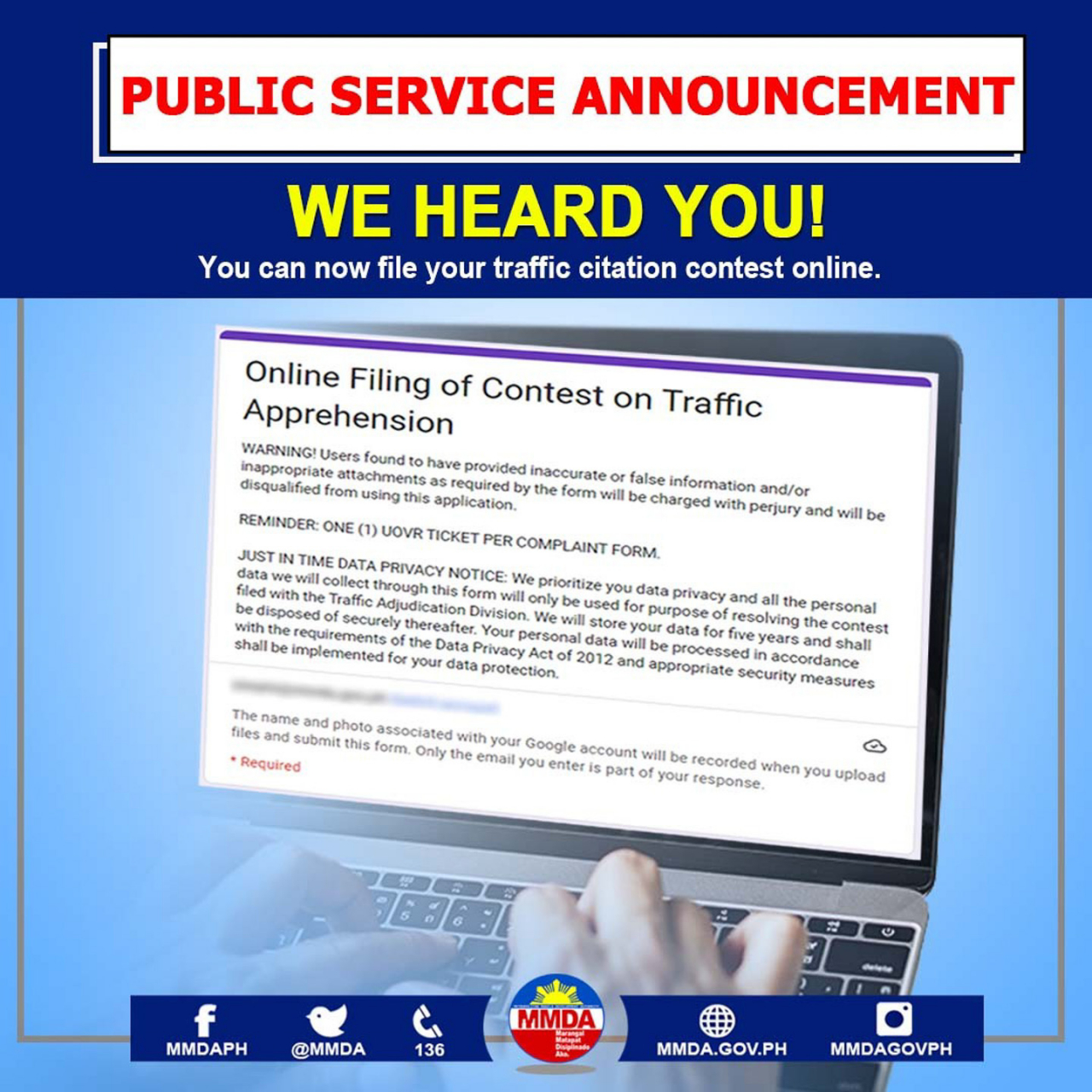MMDA has announced today, September 23, that they are launching an online filing platform where motorists who have been issued a traffic violation ticket can file for an appeal and contest the apprehension.