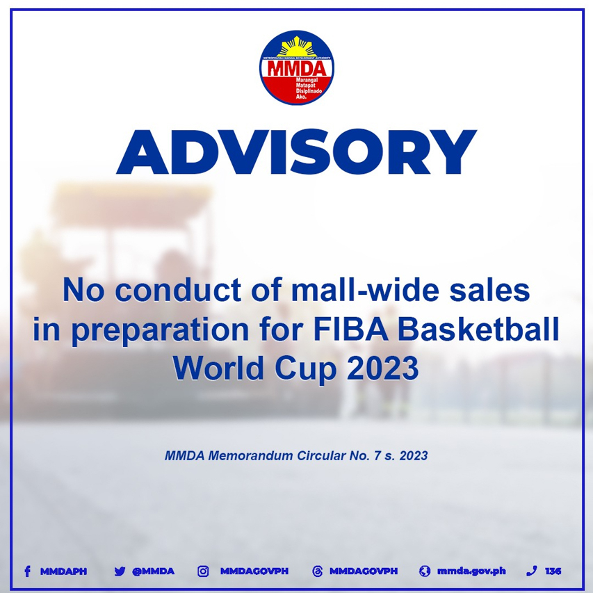 Moreover, the conduct of mall-wide sales will also be prohibited in malls along EDSA and other areas affected by the FIBA World Cup 2023 to ensure that all affected roads will remain passable, clean, safe, and serviceable to all types of vehicles and pedestrians during the said period.