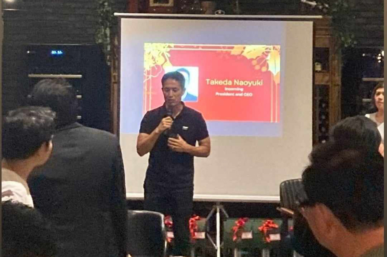 At a small year-end celebration last night, Sojitz G Auto Philippines conducted a presidential turnover. Outgoing SGAP chief Yugo Kiyofuji has handed the ceremonial key to incoming SGAP chief Naoyuki Takeda.