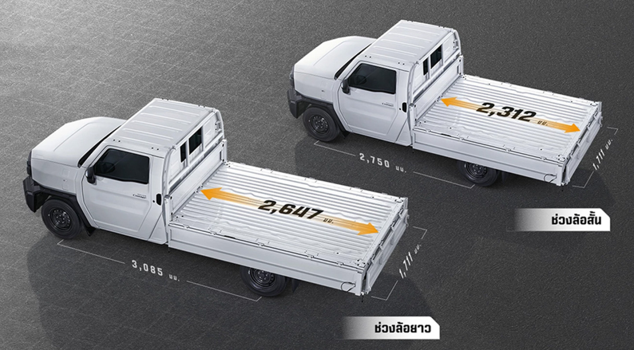 Size-wise, the short wheelbase version of the Hilux Champ measures 4970 mm long, 1785 mm wide, and 1735 mm tall. It has a 2750 mm wheelbase, and its truck bed dimensions are 2312 mm x 1711 x 327 mm. On the other hand, the long wheelbase version stretches the truck to 5300 mm long and has a wheelbase of 3085 mm. The extended length is also apparent on the truck bed as it is 362 mm longer than the SWB Hilux Champ.