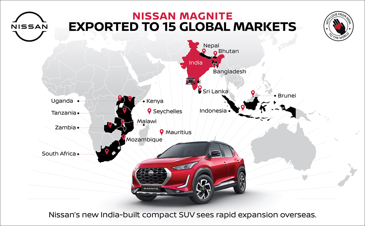 “Magnite is an exceptional car and a fantastic showcase for Nissan design and engineering, as well as the strength and expertise of Indian manufacturing. I’m excited that customers in many more markets will be able to experience Magnite. It is a great example of Nissan's innovative approach in bringing engaging products, with a strong and uniquely 'Nissan' identity, to our customers,” said Guillaume Cartier, Nissan chairperson for Africa, Middle East, India, Europe, and Oceania region
