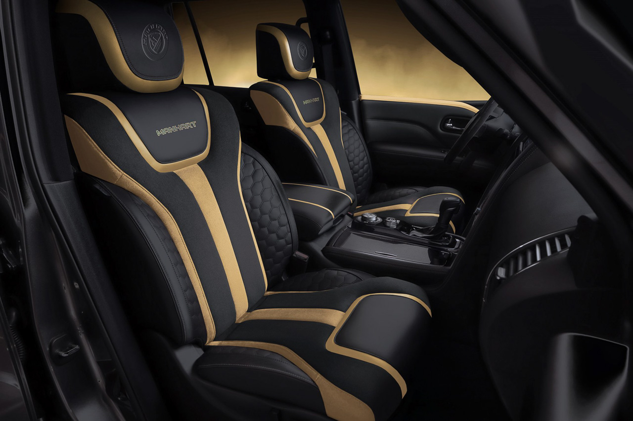 In true Manhart fashion, the customized Nissan Patrol gets the now-familiar black and gold livery. But in order to further amp up its looks, it gets special 24-inch Y-spoke forged alloy wheels along with a lowered ride height for a more aggressive stance.