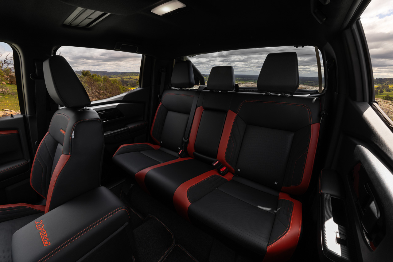 As expected, the Pro-4X features gloss black details all around, including red accents on the extended fenders and lettering, as well as a black sports bar and 17” wheels.
