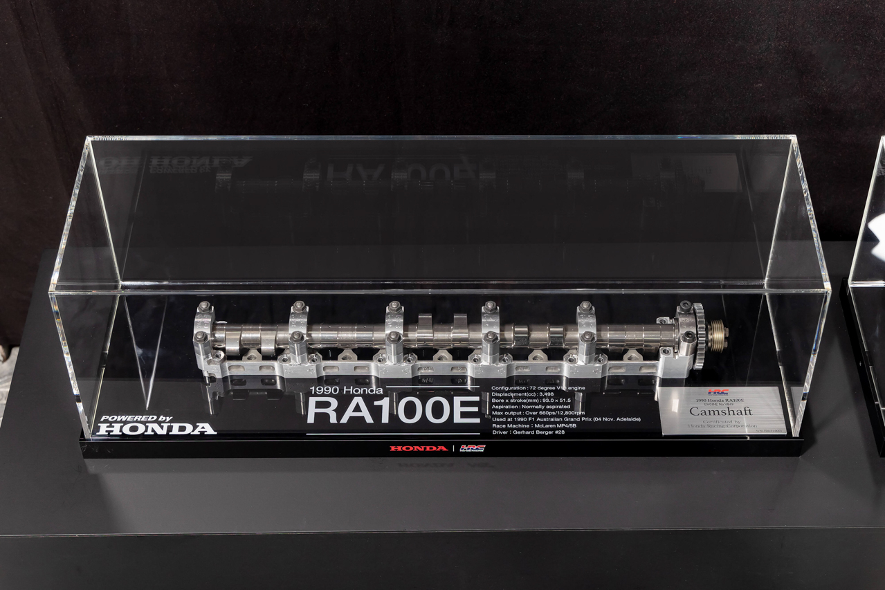 The RA100E engine was faithfully disassembled by skilled mechanics at HRC’s factory in Sakura City in Japan. The actual disassembly was done by the original builders of these very special winning engines. The items include parts such as camshafts, cam covers, pistons, and connecting rods, beautifully housed in ready-to-be-displayed cases, each accompanied by an original HRC certificate for authenticity.