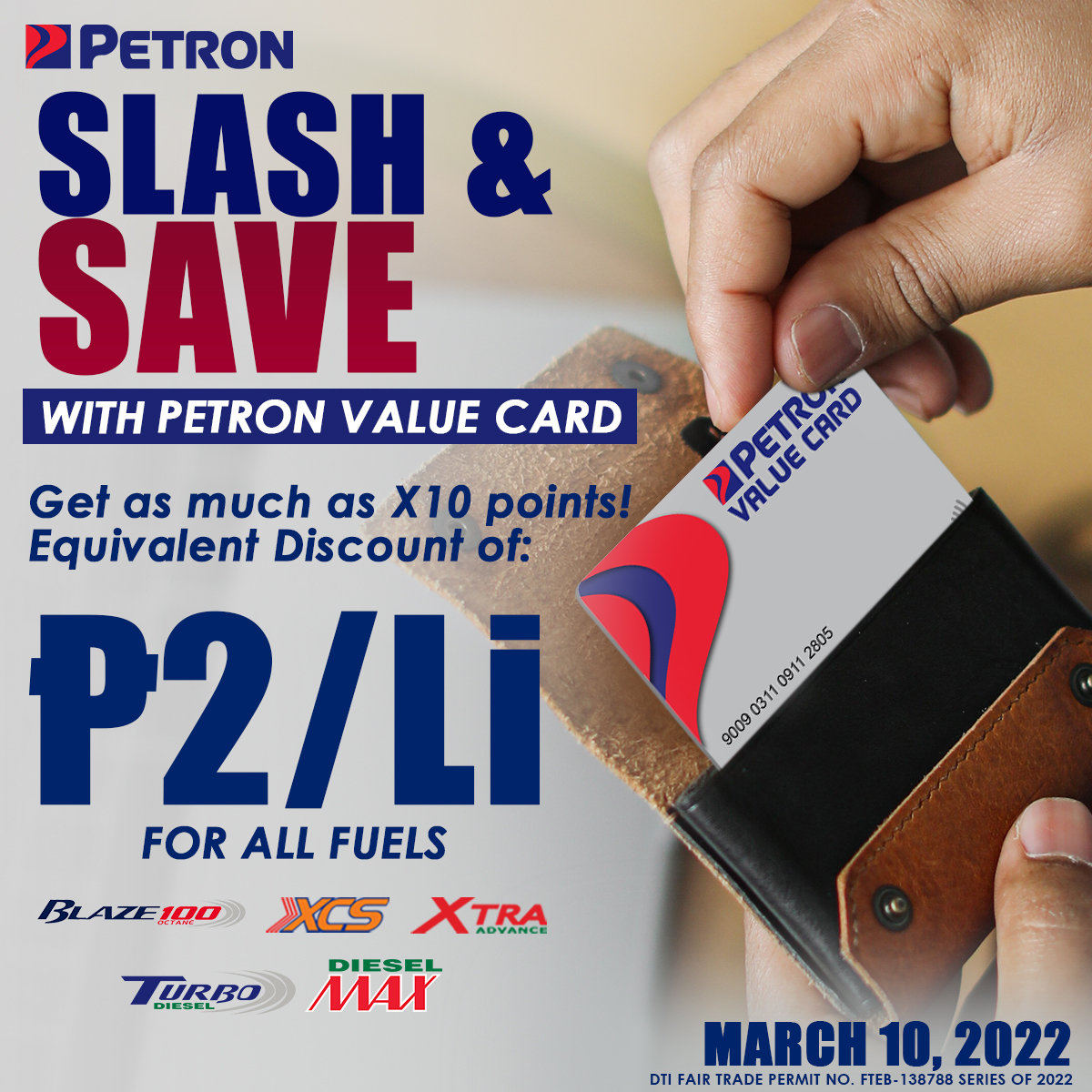 Petron introduced their Slash & Save promo for cardholders of Petron Value Card and Super Driver Card, while Petro Gazz is slashing their fuel prices until Sunday, March 13.