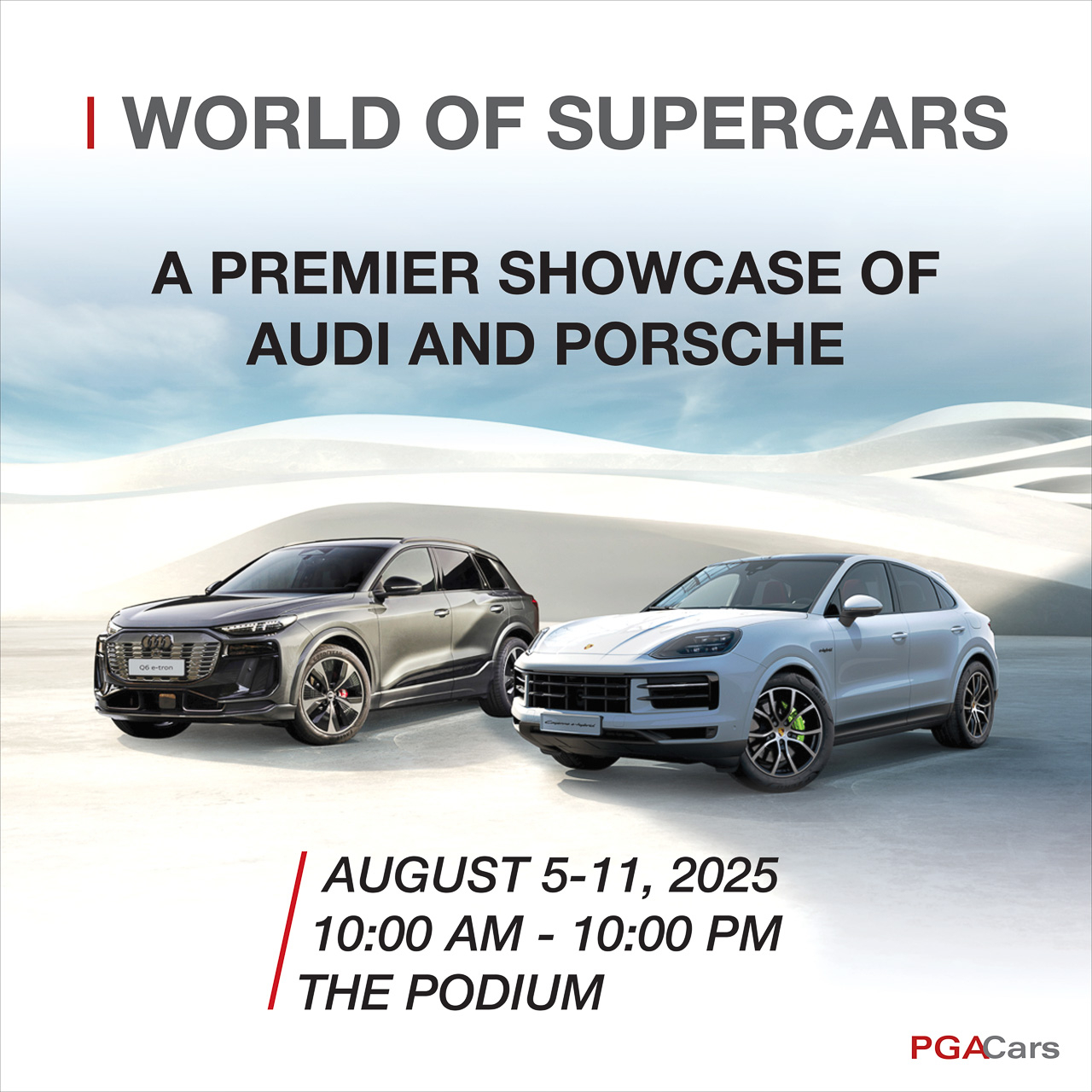 PGA Cars bring its World of Supercars to The Podium