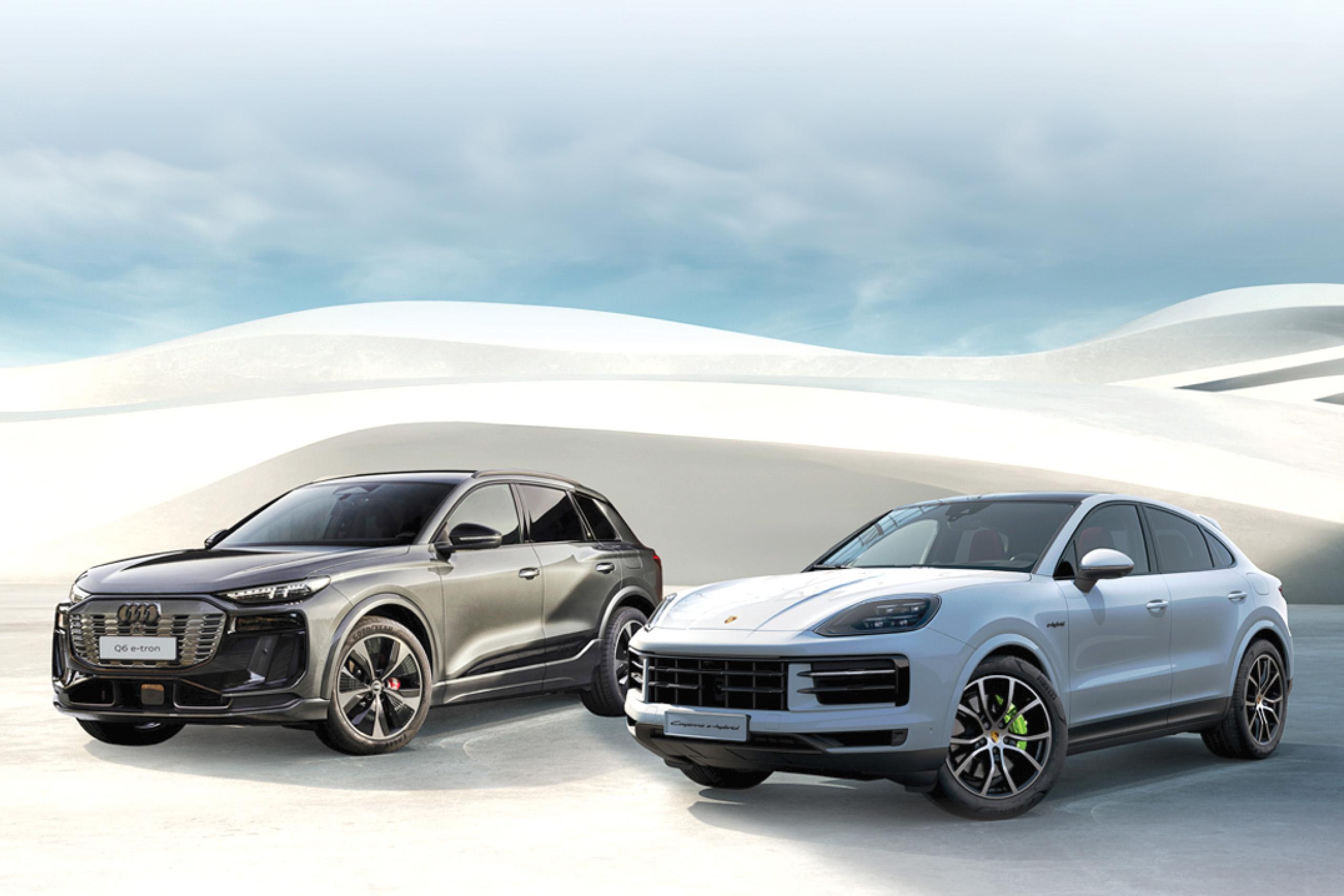 See the latest Porsche Cayenne E-Hybrid, Macan Electric, Audi Q6 e-tron, and Q7 Hybrid at The Podium