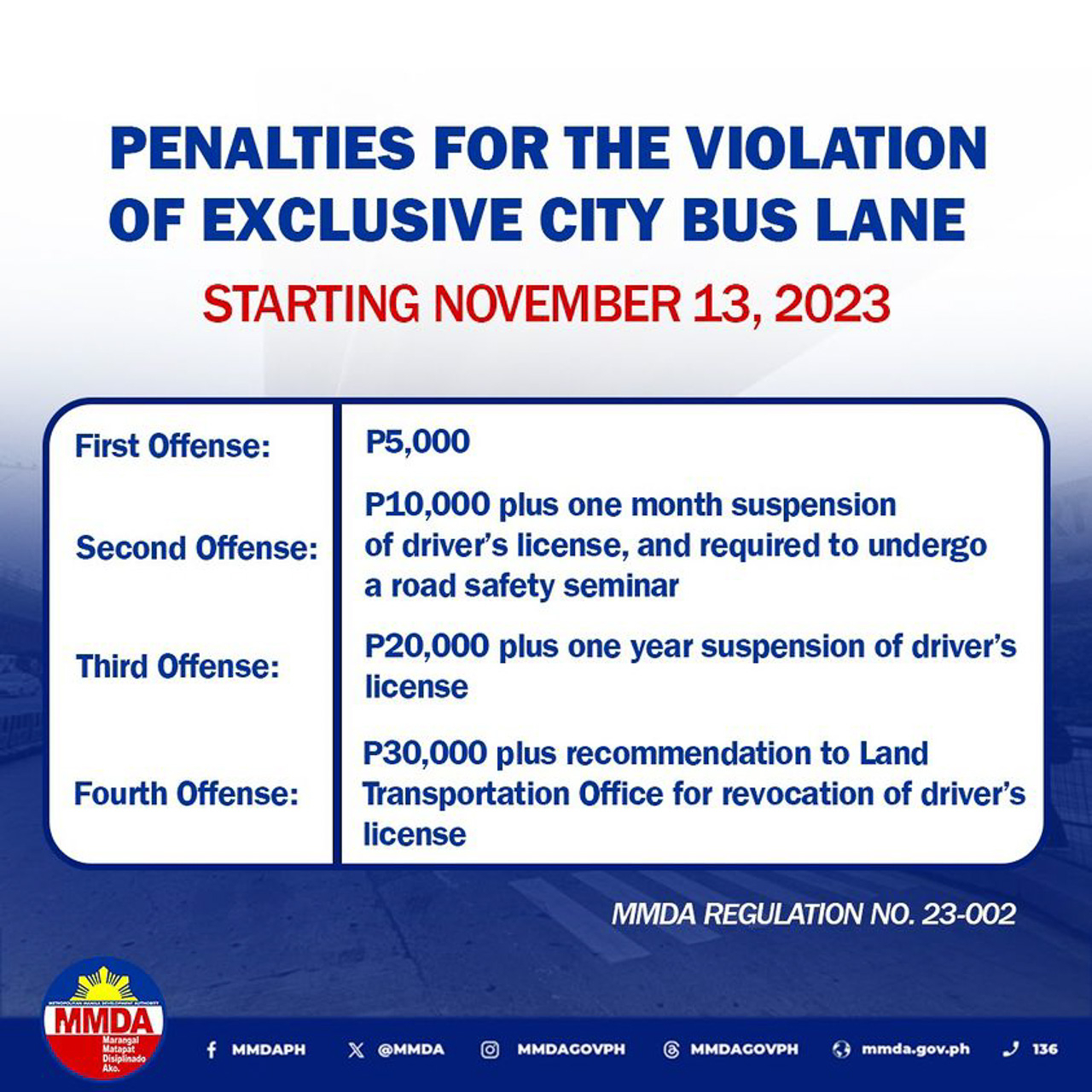 PHP 5K to 30K Bus Lane violation fine starts Nov 13, 2023