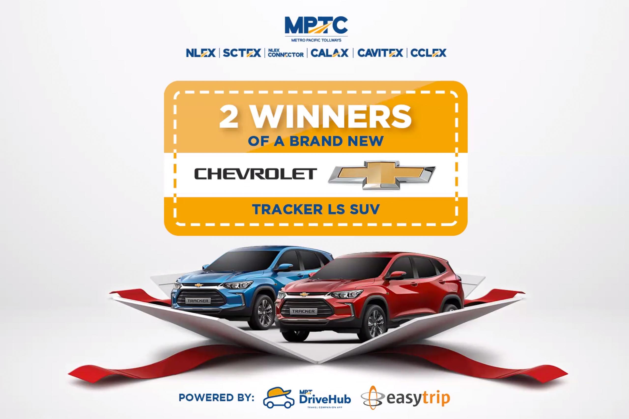 In collaboration with Chevrolet Philippines, MPTC is doubling the excitement by giving motorists a chance to win not just one but two brand-new units of a Chevrolet Tracker LS. Not only that, but MPTC will also be giving out P3 Million worth of cash prizes. Ten lucky winners will get to win P100,000 each while 40 winners will have a chance to bring home P50,000 each.