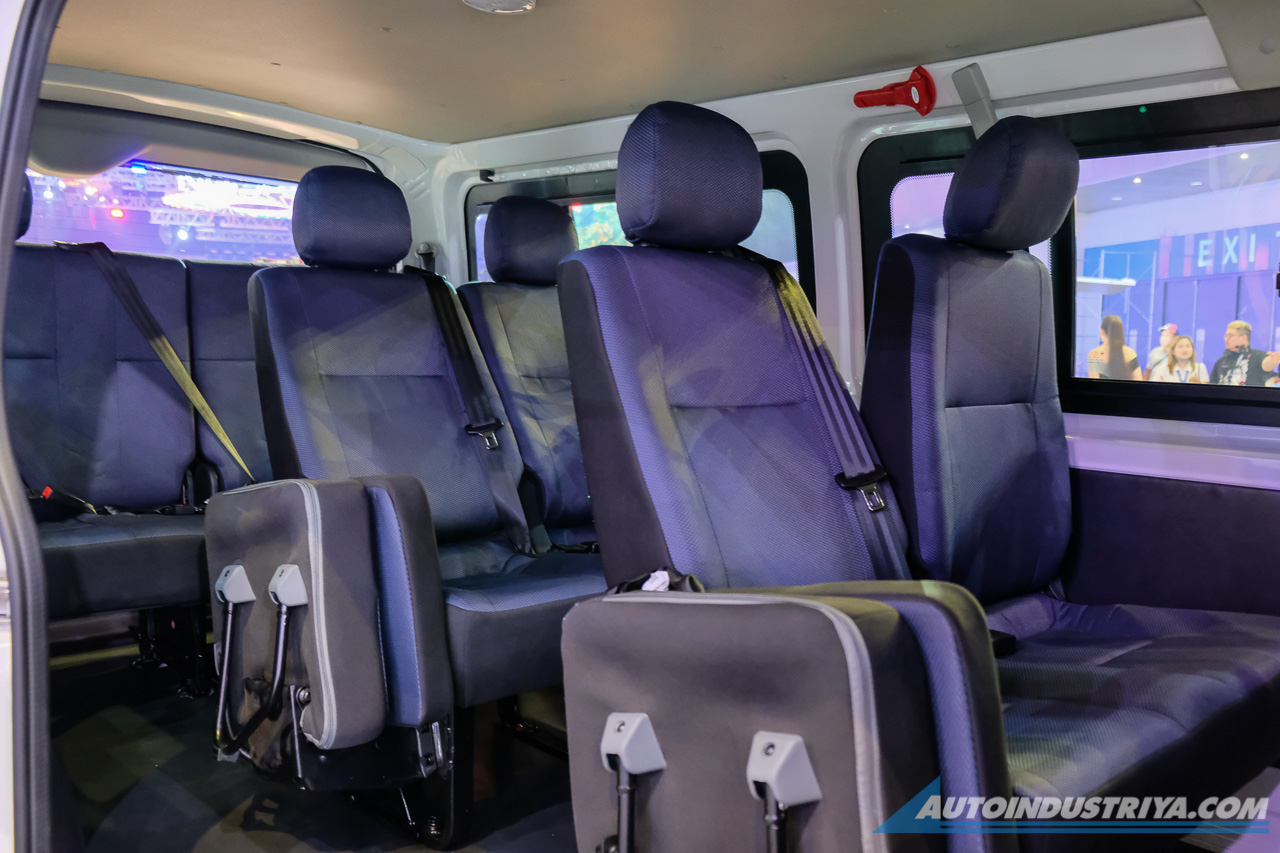 When it comes to interior seating, Transvan is available either as a 13- or 15-seater van. Amenties for the Transvan 2.0 are front and rear air-conditioning, a 2-DIN touchscreen infotainment system (13-seater only) with AM/FM radio, USB, and Aux, power windows, power locks, and a reverse camera. The 15-seater version, on the other hand, only gets a 1-DIN sound system with AM/FM radio, Aux, and USB connectivity.
