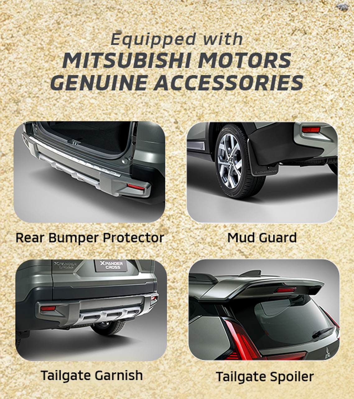 Starting with the vehicle itself, the Outdoor Edition comes with genuine accessories from Mitsubishi. These include a rear tailgate spoiler, a tailgate garnish, a rear bumper protector, and mudguards. The Xpander Cross is also painted in a unique hue called Green Bronze Metallic which is exclusive only to this special variant.