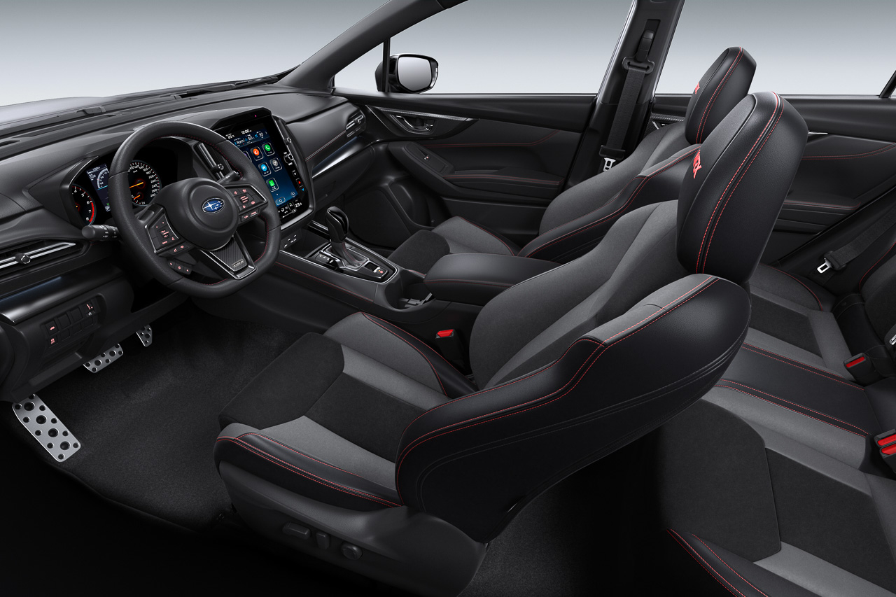 Inside the WRX, the wagon and sedan greet passengers with a full leather interior. From the dashboard, D-cut steering wheel, center console, and the seats, Subaru made sure that the cabin comes with high-quality upholstery. When it comes to infotainment, all variants will come with the new 11.8-inch touchscreen media display. It has Apple CarPlay, Android Auto, Bluetooth, as well as USB connectivity.