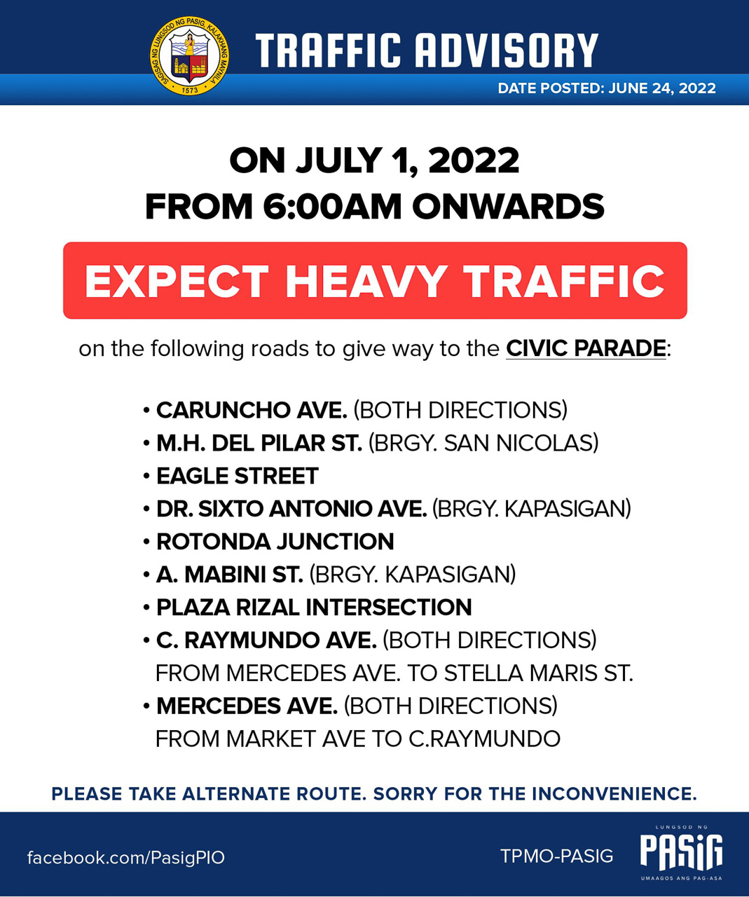 READ: Avoid these roads in Pasig City on July 1, 2022