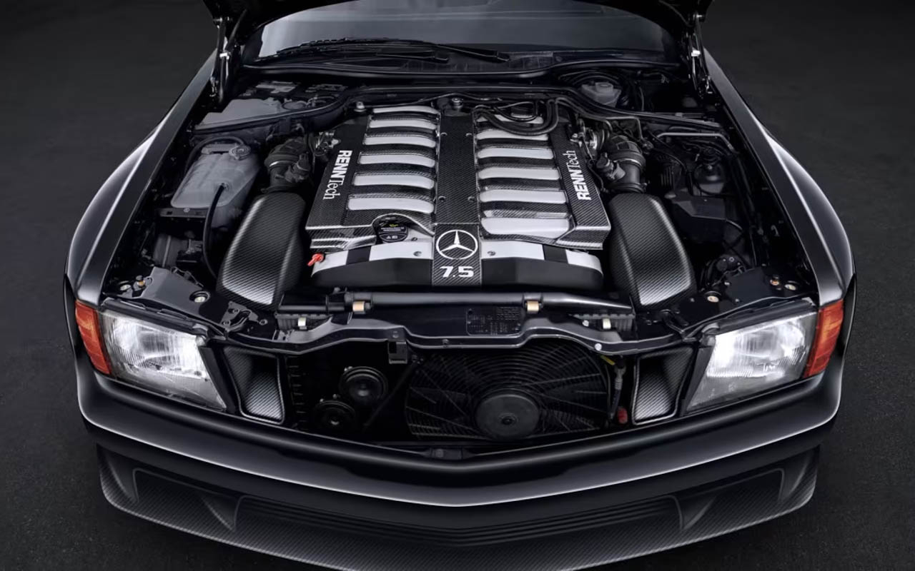 At the heart of RennTech’s resto-mod lies a 7.5-liter M120 V12 engine producing 669 PS and 881 Nm of torque, paired with a manual transaxle. This is the same engine that powers the Pagani Zonda and the Mercedes CLK GTR. Known for its smooth refinement, the M120 in the Widebody Sledgehammer will feature equal-length headers, promising RennTech’s signature V12 soundtrack.