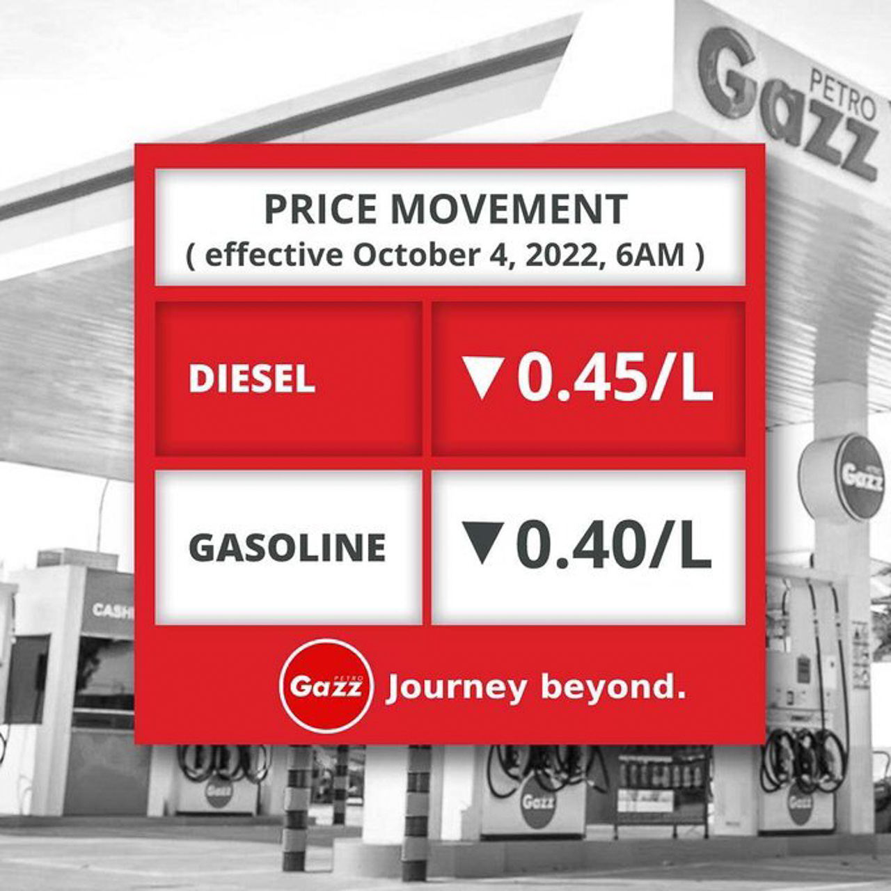 Oil players such as Caltex, Cleanfuel, Petrogazz, Seaoil, and Shell have already announced they will be adjusting prices accordingly tomorrow. Caltex and Cleanfuel will lower their prices starting at 12:01 AM while Petrogazz, Seaoil, and Shell will only roll back prices beginning at 6:00 AM.