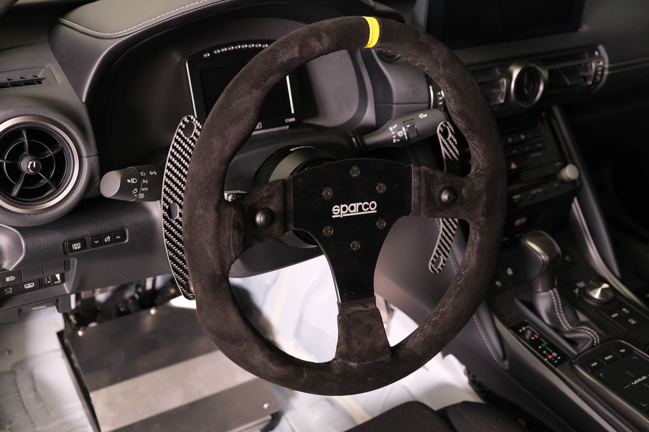 Since this vehicle is meant to dominate the track, the chassis of the IS600+ has been stiffened thanks to a 4-point roll cage. The suspension, on the other hand, has been upgraded with KW Double Adjustable coilovers which help keep the massive Michelin Pilot Sport 4S tires in contact with the pavement. Allowing the sports sedan to quickly shave off speed comes courtesy of the RC F Carbon Ceramic brake pack.