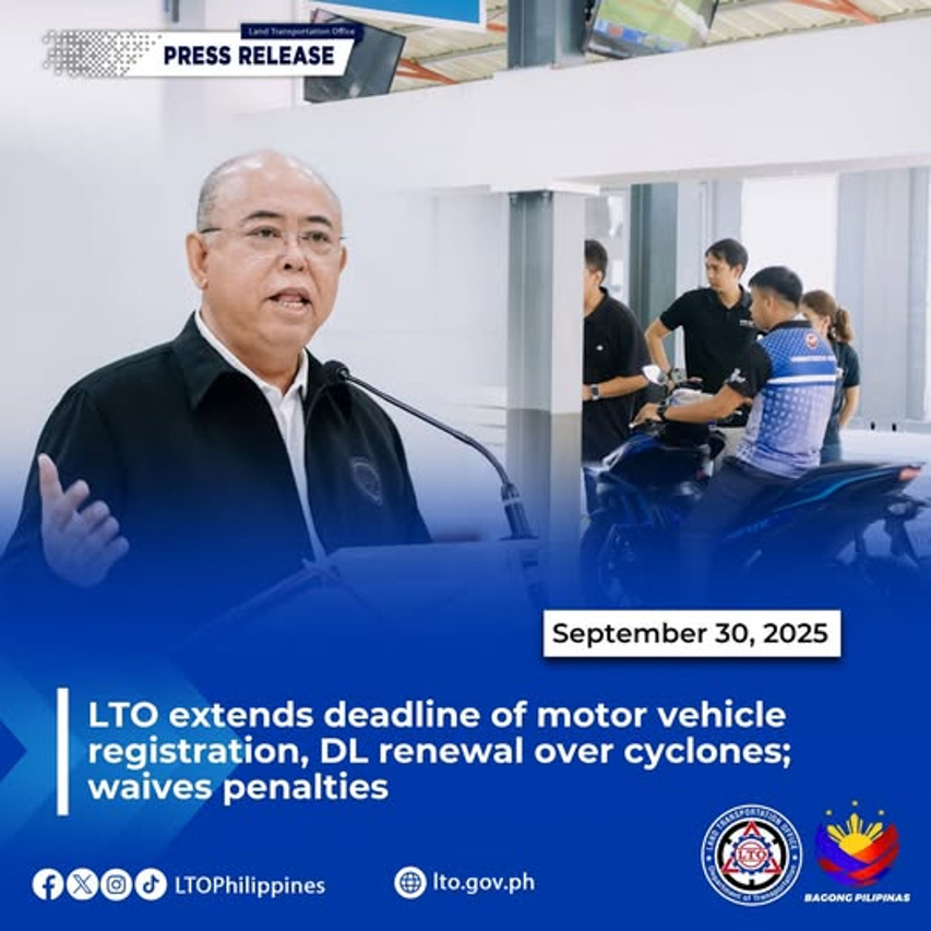In recent weeks, large parts of the country have been battered by successive typhoons, which were further intensified by the Habagat (Southwest Monsoon). In response, the Land Transportation Office (LTO) has moved to ease the burden on motorists by extending the validity of all motor vehicle registrations and driver’s licenses set to expire on September 30, 2025.